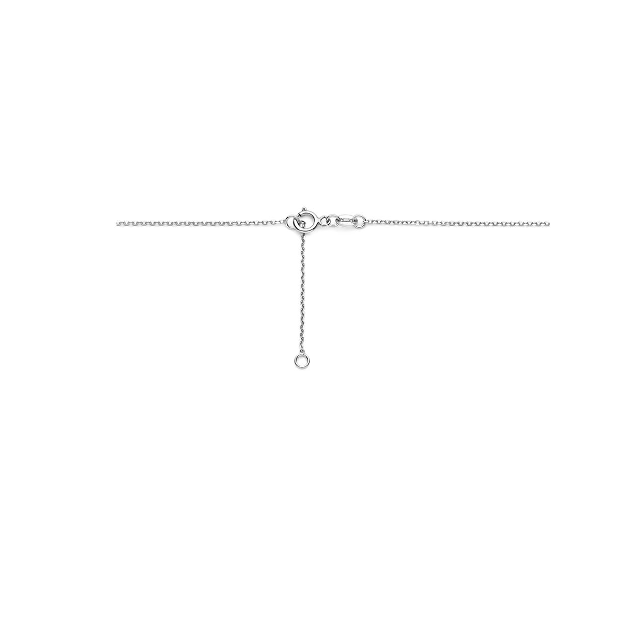 14k Witgouden collier uitgevoerd met een rondje en diamanten. Het collier heeft draaglengtes van 42 en 45 cm. De schakelbreedte is 1.0mm.