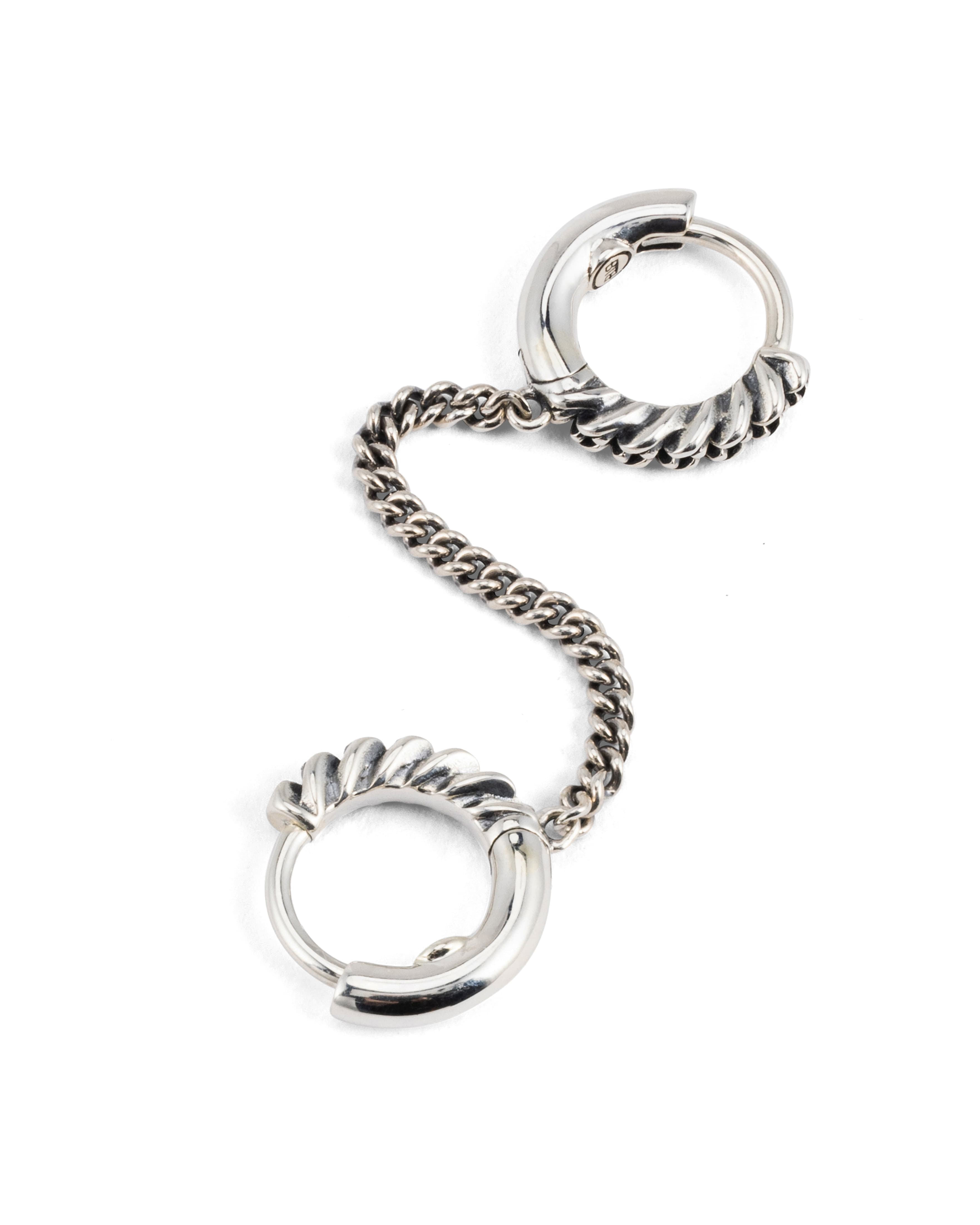 De Hoops Nathalie Double Linked combineren de schoonheid van twee oorbellen in één. Geïnspireerd door het beroemde Nathalie-weefpatroon, bevatten deze oorbellen twee zorgvuldig ontworpen ringen die prachtig zijn verbonden met een slanke, zilveren ketting. Gemaakt van duurzaam gerecycled 925 sterling zilver, bieden deze dubbele oorbellen een dynamische en elegante look, perfect voor liefhebbers van unieke sieraden. De combinatie van twee verbonden oorbellen voegt beweging en diepte toe.