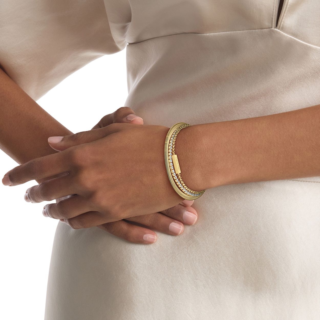 Deze stalen dames armbanden van Calvin Klein met nr CJ35000797 zijn een musthave voor je collectie. De goudkleurige stalen set is zeer gevarieerd en bestaat uit 3 armbanden. Een slangenarmband, een tennisarmband en een fijne schakelarmband. Leuk te combineren met andere sieraden uit de serie van Calvin Klein.