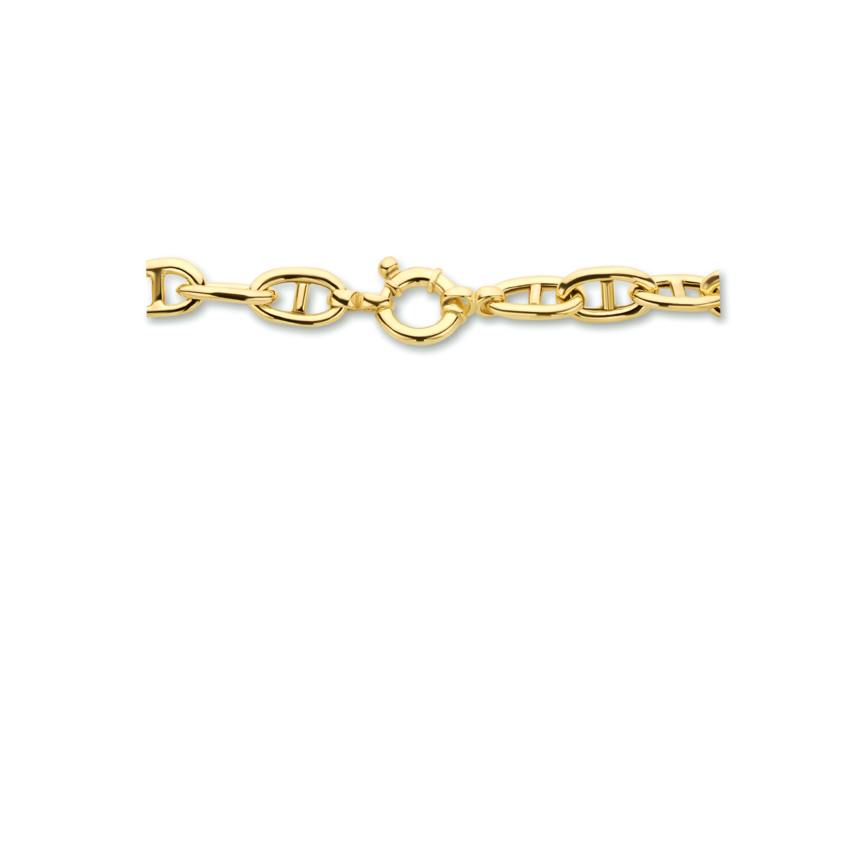 Geelgoud op 925 zilveren collier uitgevoerd met een veerslot. Het collier heeft een schakelbreedte van 10.3mm. Geen garantie plating.
