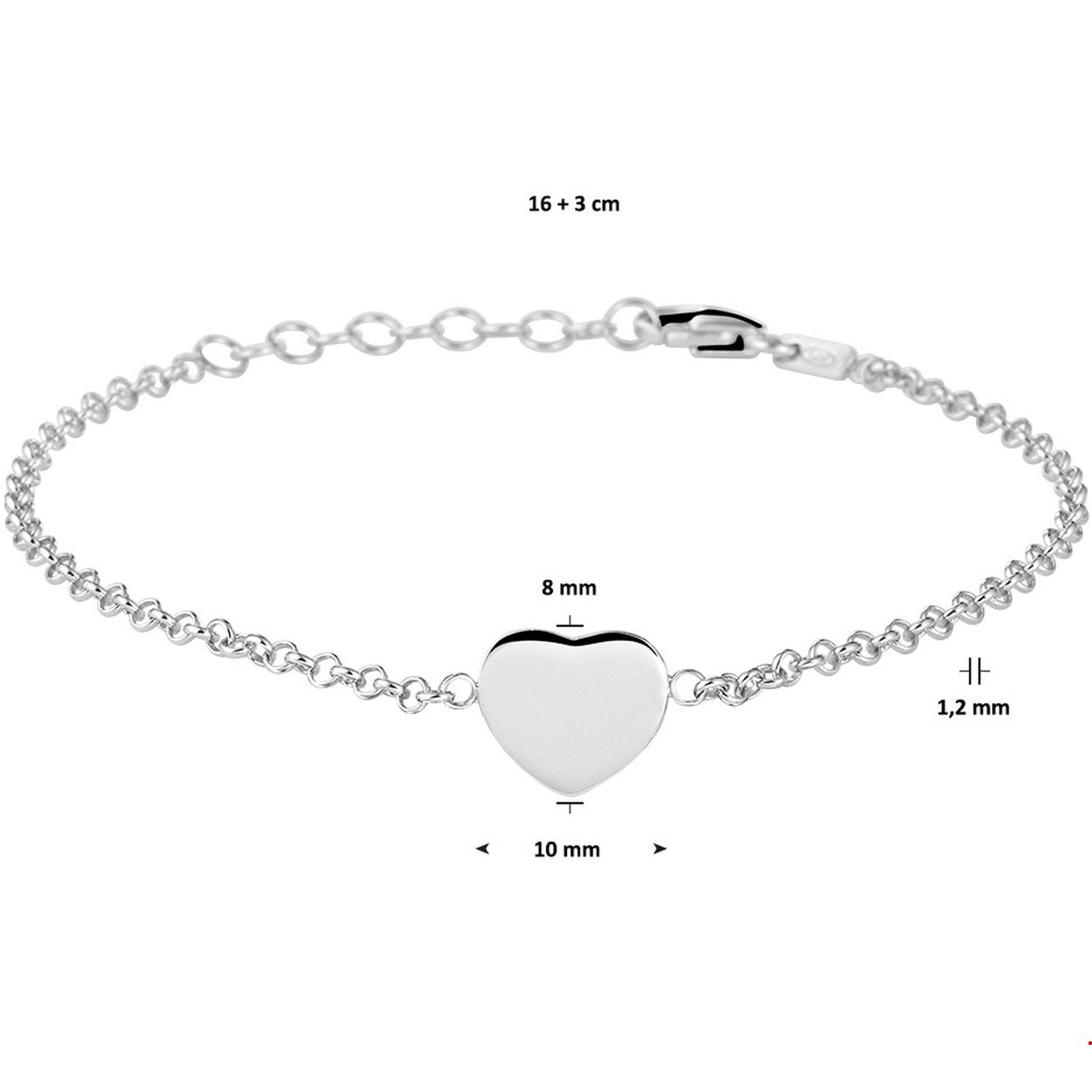 Beschrijving: Gerhodineerd zilveren armband uitgevoerd met een poli afgewerkt hart van 8x10mm. De armband heeft een draaglengte van 16cm en een extensie van 3cm. Info: Gerhodineerd zilver is door de rhodiumlaag beter bestand tegen verkleuren en krassen.