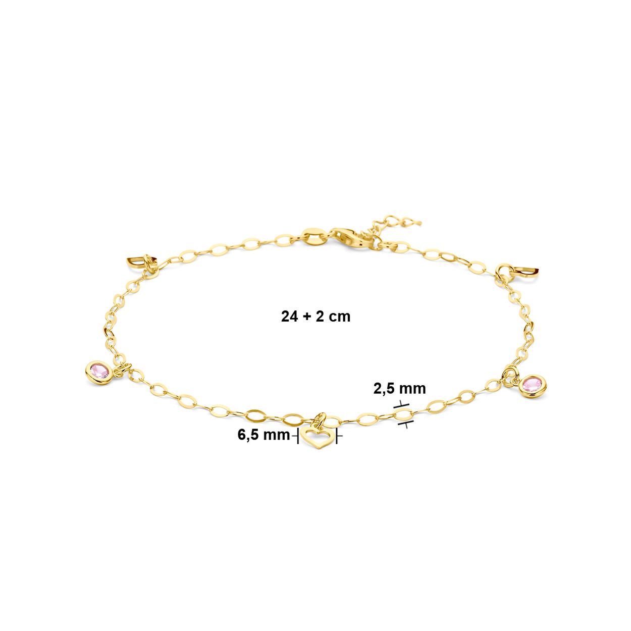 21.03676 Enkelbandje hart en roze zirkonia 24 + 2 cm 3 micron