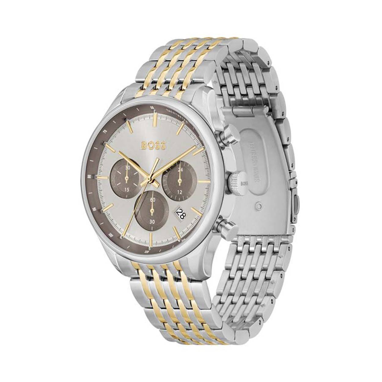 Zilver goudkleurig herenhorloge met een zilverkleurige wijzerplaat
