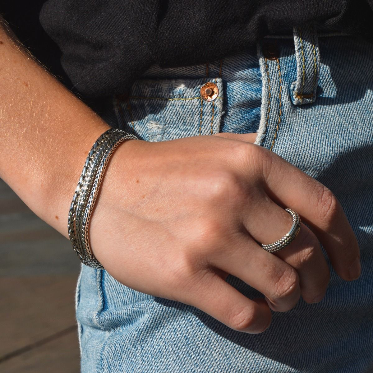 Drie verschillende schakels van sterling zilver in één armband. Dat maakt deze Triple mini-armband tot een uniek sieraad. De populaire schakels van Barbara, Ellen en George worden gecombineerd tot één stijlvolle armband. Handgemaakt van sterling zilver en tijdloos zoals bij alle Buddha to Buddha-artikelen.