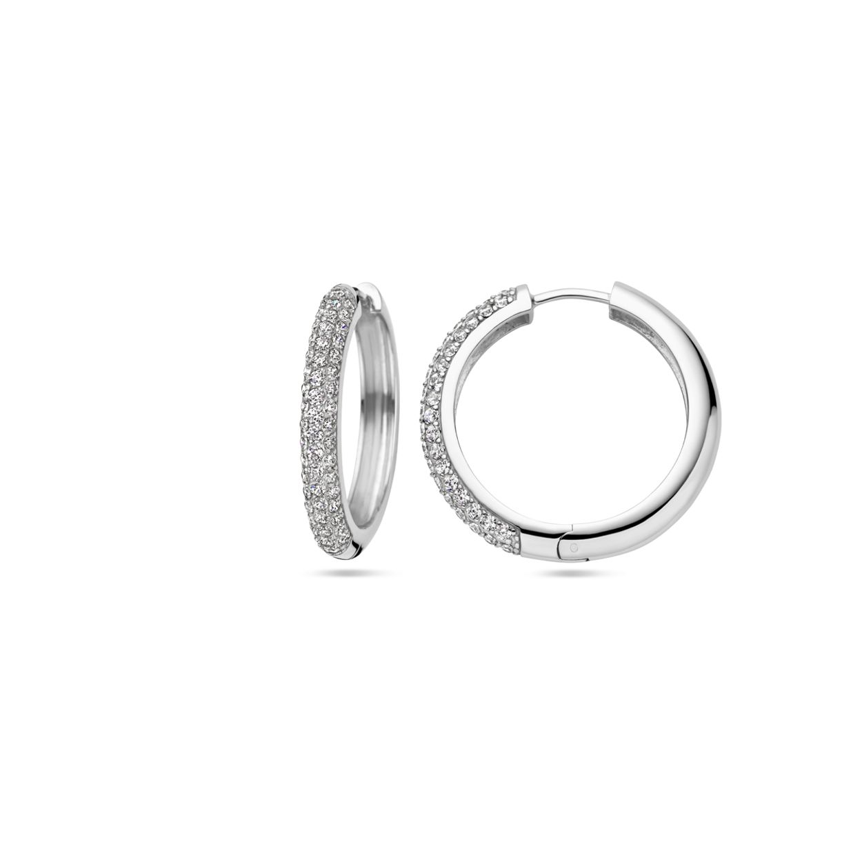 Gerhodineerd 925 zilveren klapoorringen uitgevoerd met zirkonia. De klapoorringen hebben een afmeting van 26x4mm.