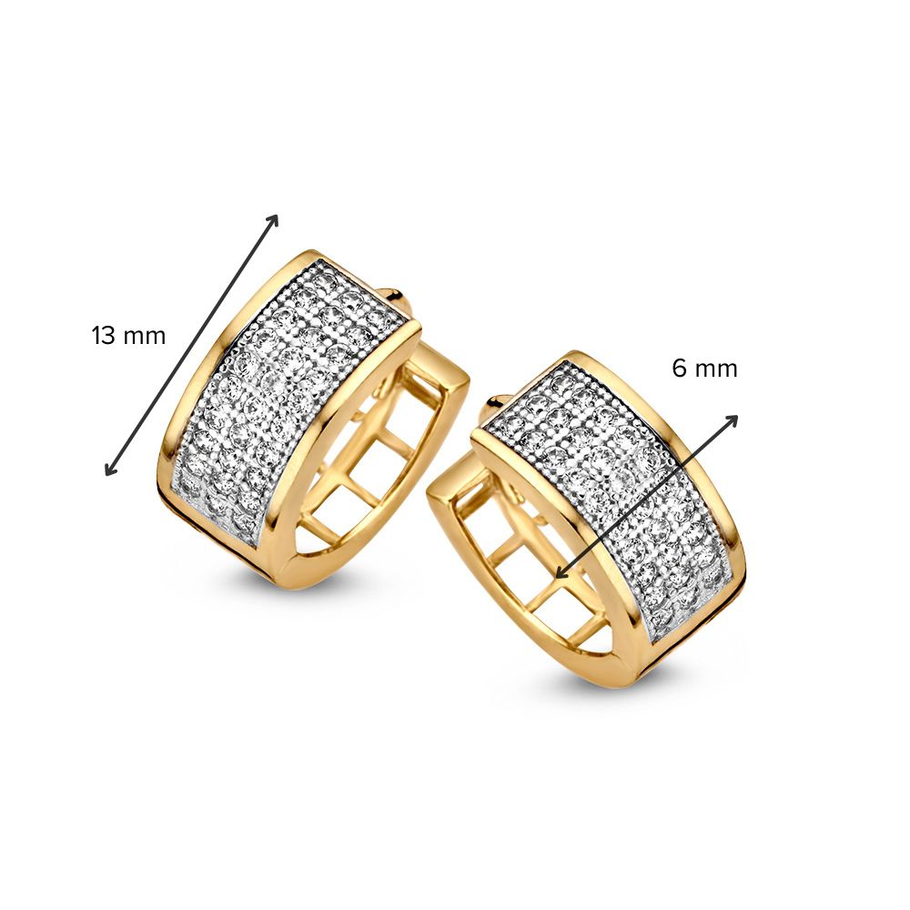 Brede, geelgouden oorringen met zirkonia's in pavézetting.