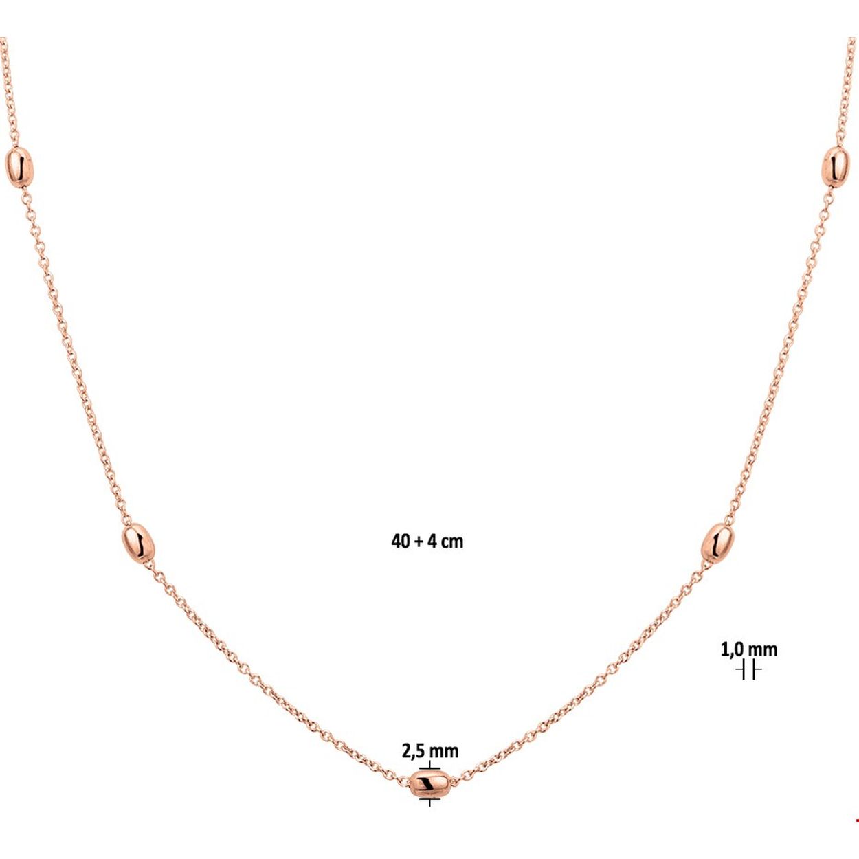 Beschrijving: Fijn rosegoud op zilveren bolletjes collier met een draaglengte van 40cm en een extensie van 4cm. Uitgevoerd met een anker schakel van 1.0mm en een stevige karabijn sluiting. De bolletjes hebben een afmeting van 2.5x3.6mm. Het collier is te combineren met bijpassende sieraden uit onze collectie.