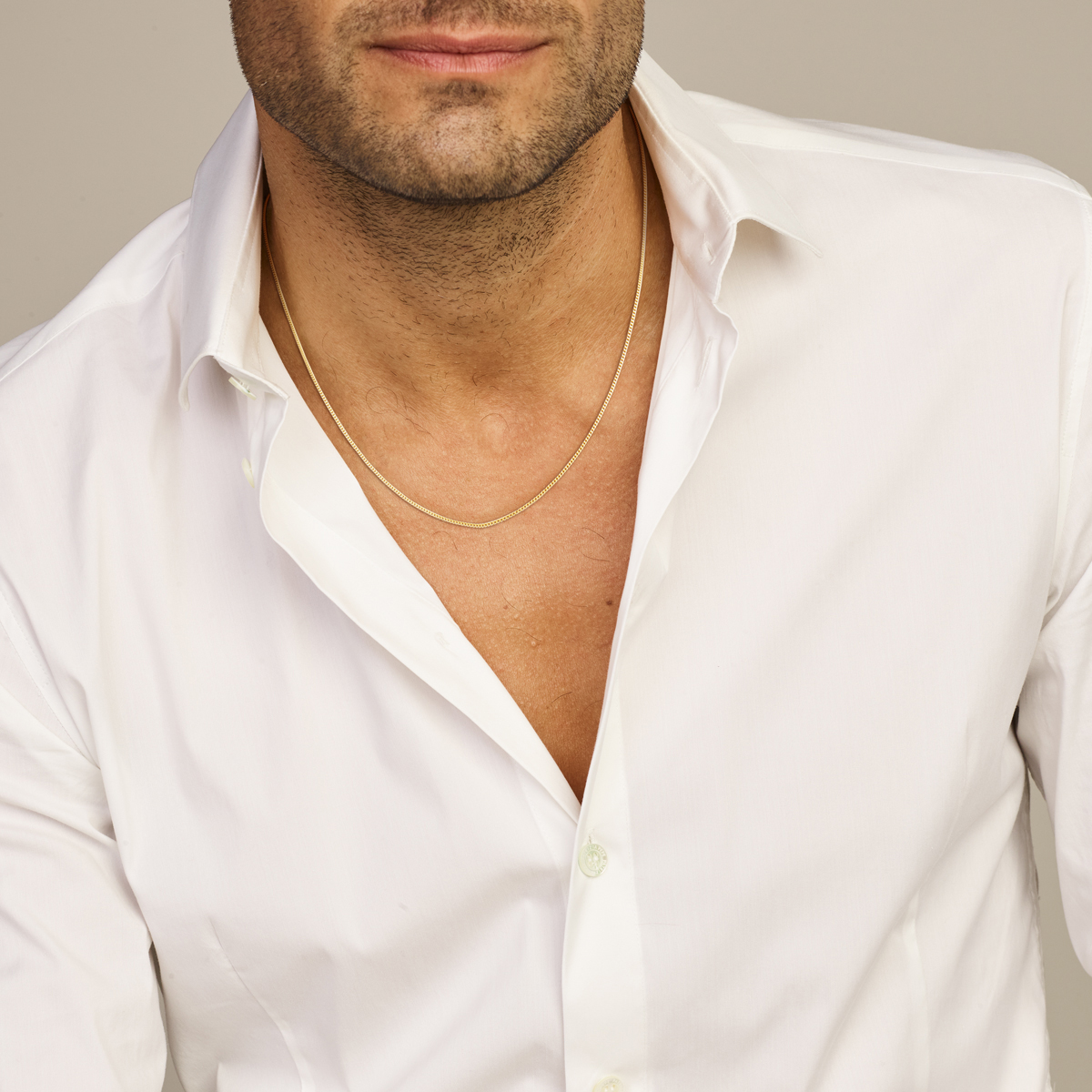 9K collier met gourmette schakel. De schakelbreedte is 1.2mm.