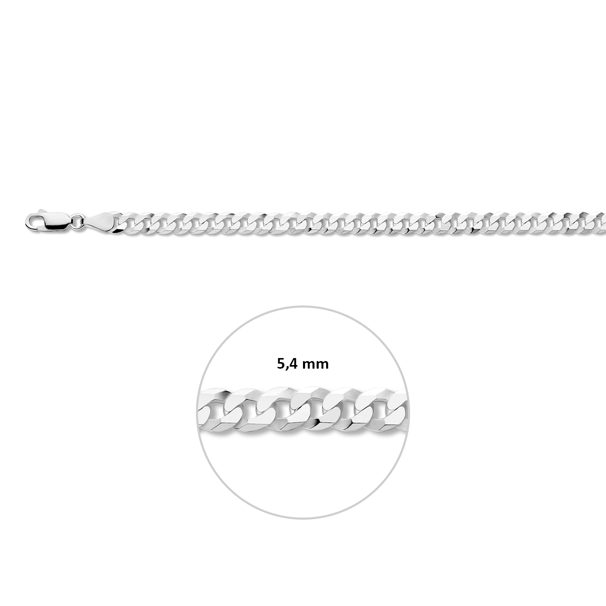 Gerhodineerd 925 zilveren gourmette lengte artikel met een schakelbreedte van 5,4mm. Het lengteartikel heeft een karabijn sluiting.